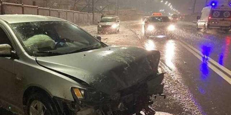 В Киеве на скользкой дороге произошло лобовое ДТП с авто и микроавтобусом