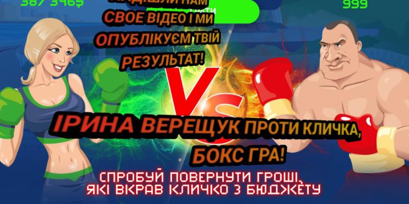 В интернете появилась игра, где персонаж, очень напоминающий Ирину Верещук, боксирует с кем-то очень похожим на действующего мэра Киева Виталия Кличко.
